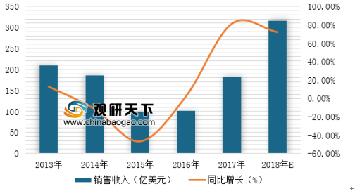 根據(jù)《中國工程機械工業(yè)年鑒》數(shù)據(jù)顯示,2017年,中國工程機械銷售額達到183.15億美元,較上年同比增長81.11%。根據(jù)工程機械主要組成部分挖掘機、推土機、壓路機等產(chǎn)品2018年銷量增長幅度預計,2018年,中國工程機械銷售額將會繼續(xù)保持飛速增長,預計銷售額將會超過315億美元。